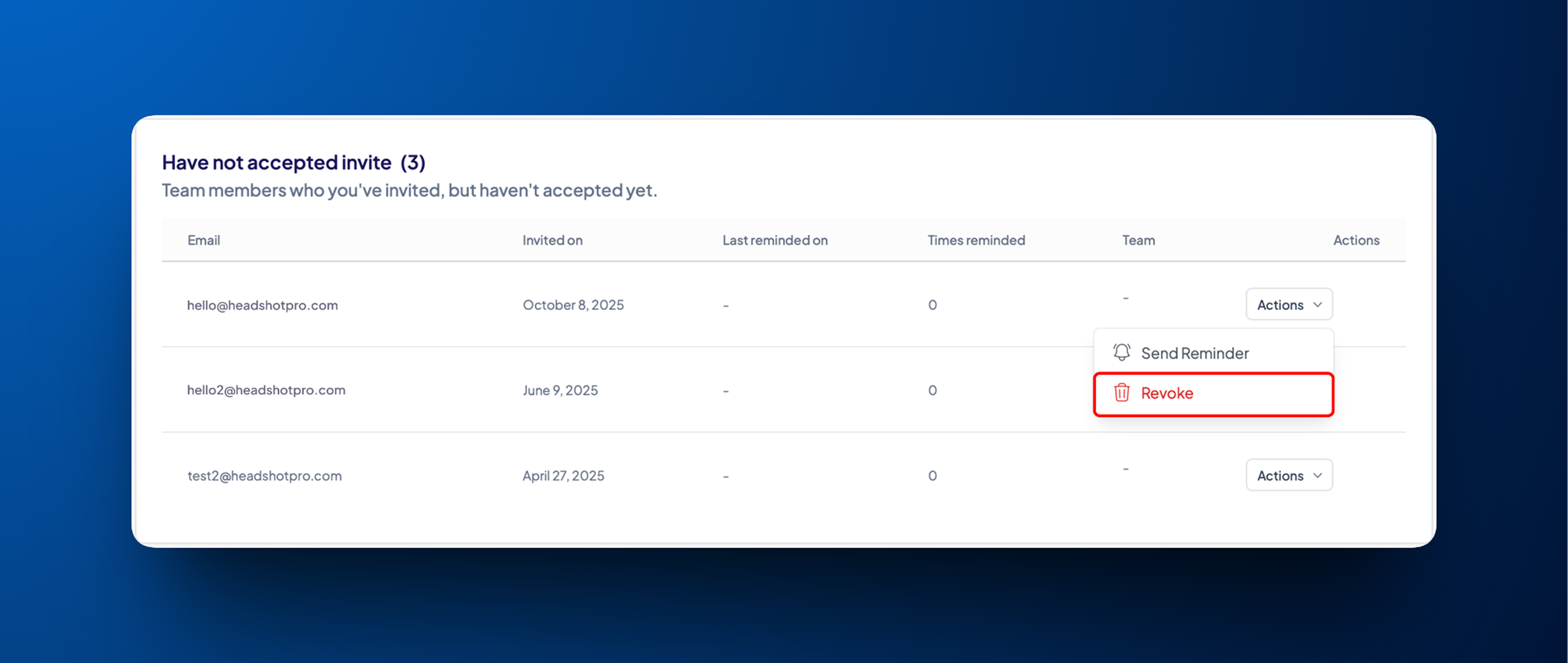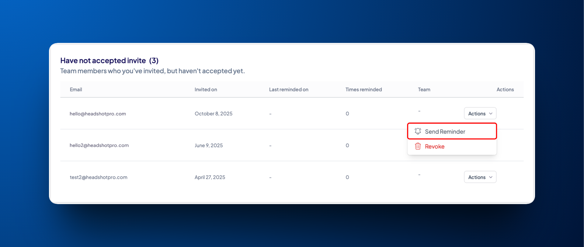 Your team members will receive an email from HeadshotPro inviting them to join your team.