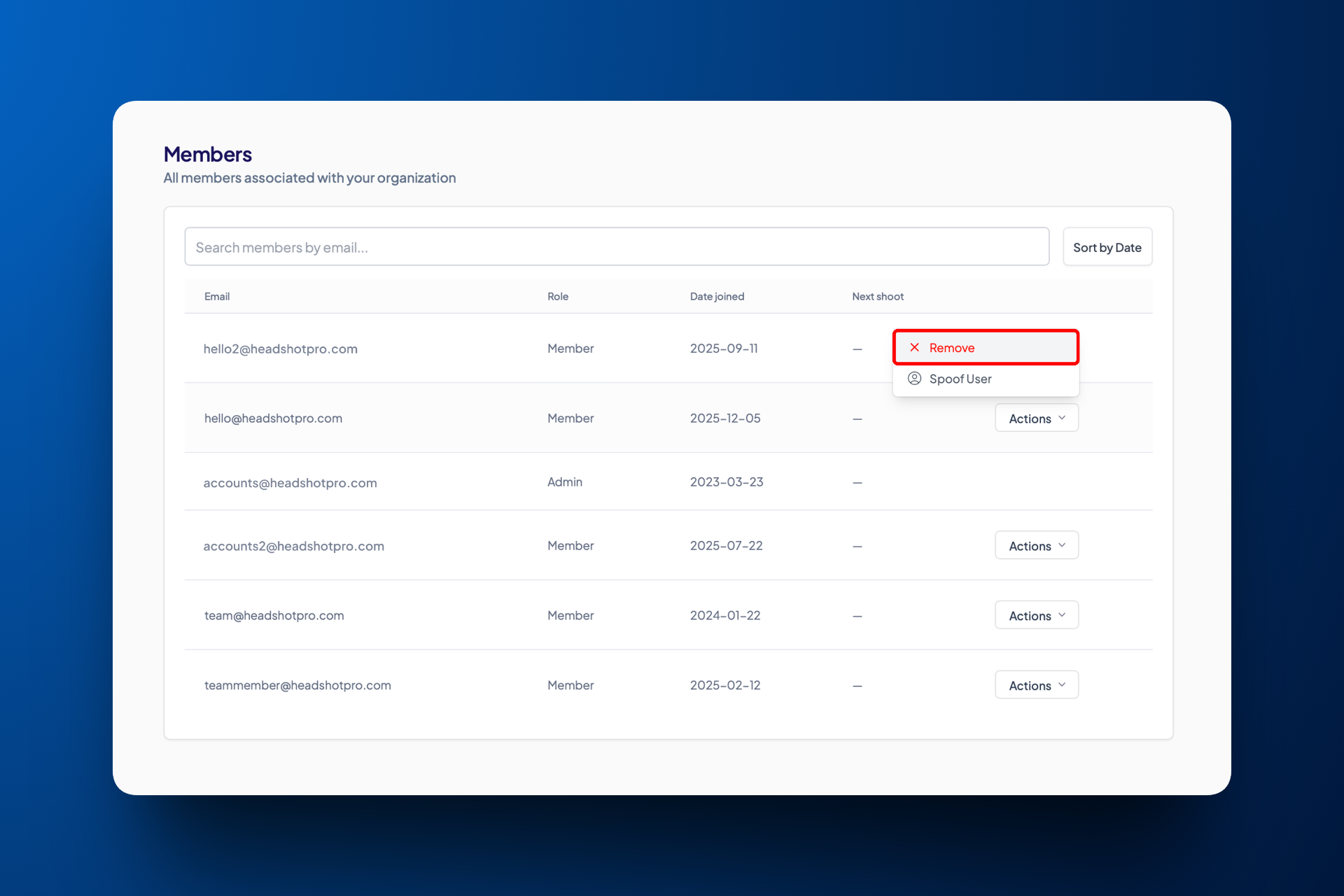 As the team owner, you can invite and manage all team members of your organization in HeadshotPro.