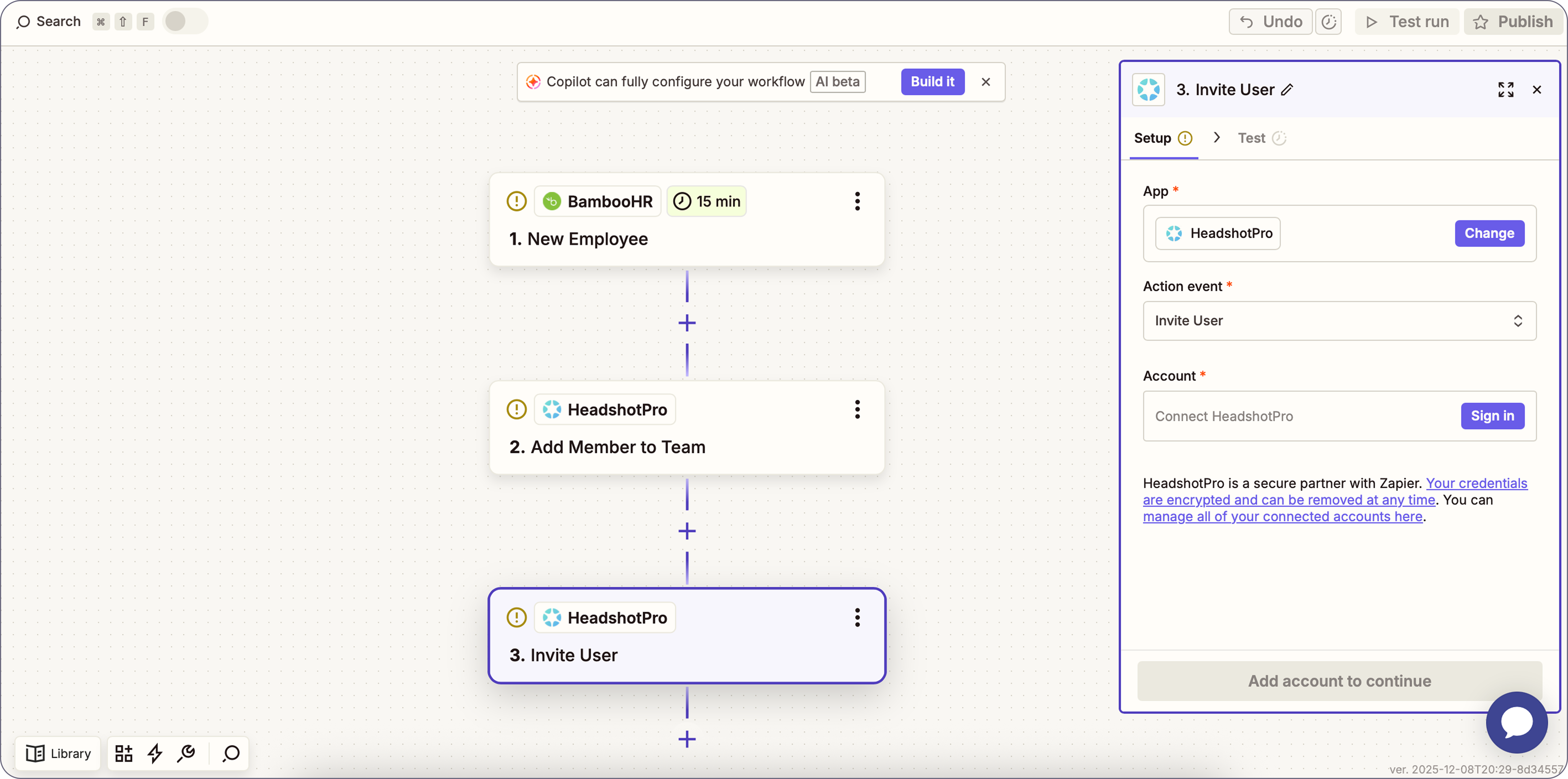 An action - The event you want Zapier to do in HeadshotPro once the trigger occurs: